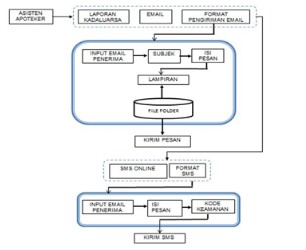 Pada sistem ini yaitu admin dapat mengirimkan data laporan setiap bulan melalui email. Komputer di haruskan memiliki akses internet berupa modem atau router untuk mengirim laporannya menggunakan email. Pengiriman via email dengan format pengisian input email penerima, subjek, isi pesan, mengambil file lampiran untuk dikirim dan kirim pesan. Setelah data terkirim admin mengirimkan sms dengan menggunakan sms online sebagai sarana mengirim notifikasi bahwa email telah terkirim. Format dalam mengirim sms online yaitu dengan input nomer handphone penerima, mengisikan isi pesan dan mengisikan kode keamanan setelah itu kirim sms.